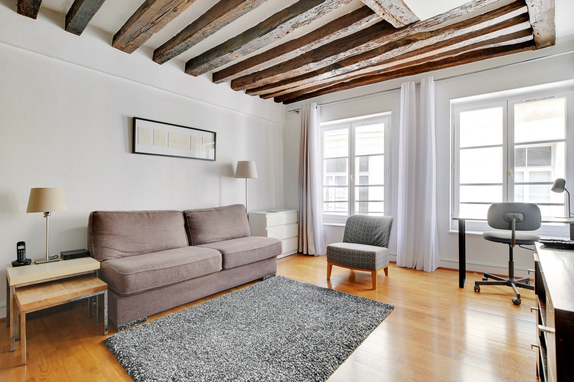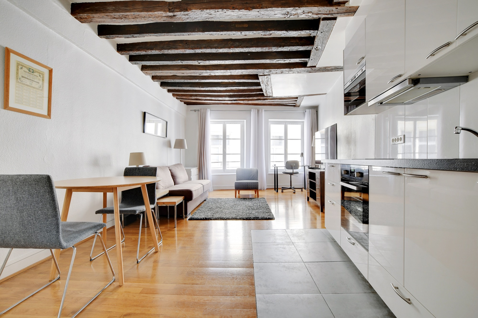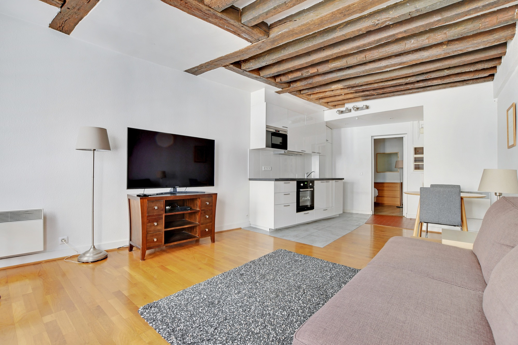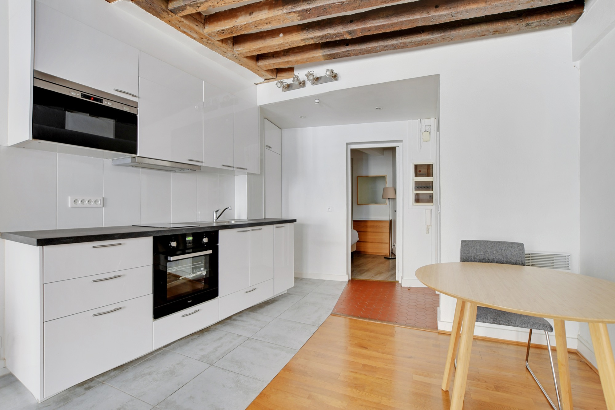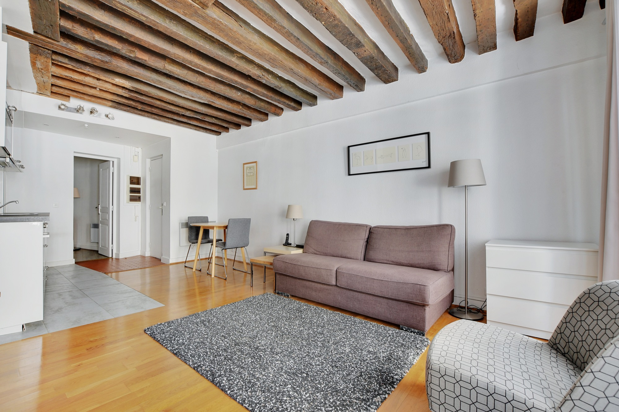 Montorgueil, rue du Louvre. Dans un immeuble du 17ème siècle, au 3ème étage sans ascenseur, nous vous proposons en exclusivité un beau 2 pièces de 38,48 m² loi Carrez. Il comprend un séjour de 24,27 m² donnant sur sur rue avec cuisine ouverte équipée, une chambre de 9,55 m² donnant sur cour et une salle de bains avec wc. Parquet et poutres apparentes. Vendu avec une cave de 4 m². Les informations sur les risques auxquels ce bien est exposé sont disponibles sur le site Géorisques